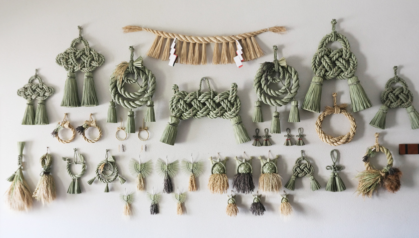 飾る場所の環境にもよりますが、当初見られる青みは少しずつ抜け、徐々に稲藁の色へとその色合いを変えていきます。その時しか感じえない瑞々しい表情やその後変わりゆく表情の変化もお楽しみ頂けましたら幸いです。